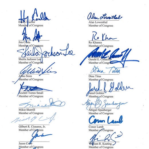 The letter was signed by prominent Democrats such as Rep. Bennie G. Thompson, Rep. Eliot L. Engel, Rep. Jamie Raskin, Rep. Stephen F. Lynch, Rep. Jim Cooper, Rep. Gregory Meeks, Rep. Sheila Jackson Lee, Rep. Ro Khanna, and Rep. Al Green.