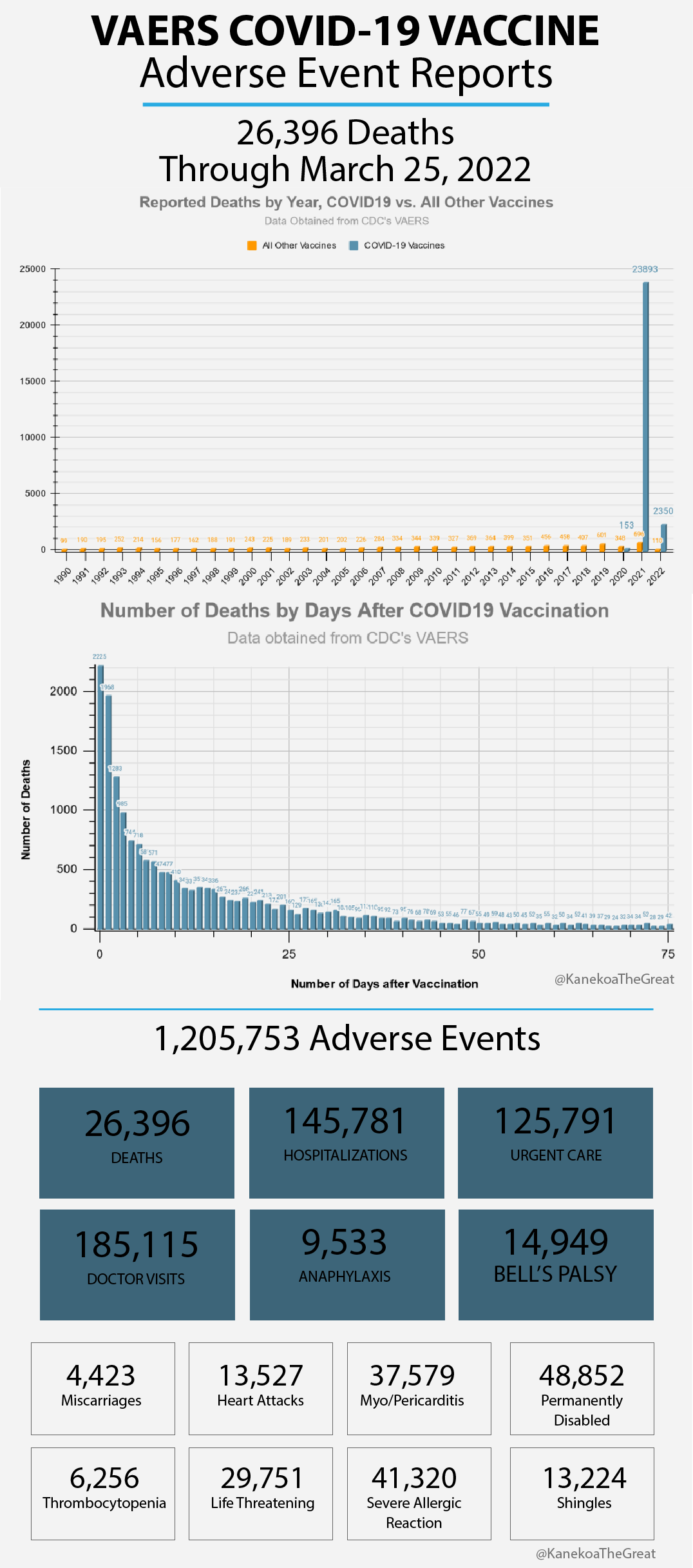 9-pages of side effects, 158,893 adverse events, 42,086 case reports, 1,223 fatalities in Pfizer's first three months and a record death rate among American millennials during the second half of 2021.